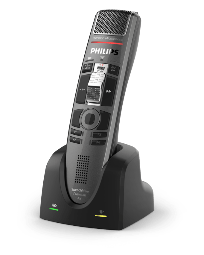 Philips brengt een zeer goede microfoon op de markt. Philips SpeechMike Premium Touch SMP4000 (druktoetsen) en SMP4010 (schuifschakelaar).